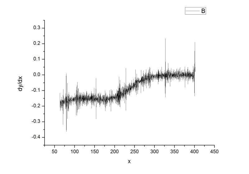 本人现有一些数据,需要求这些曲线的导数(dy/dx),使用了origin中的Analysis-Calculus ifferentiate命令,但所做的曲线与文献中差别很大,而且噪音很大,不知道自己在哪一步做错了,希望有大牛帮个忙,无限感激!附件是本人做的图和文献的图的对比,以及原始数据。 本人计算数据所得图.jpg 文献的图.jpg |