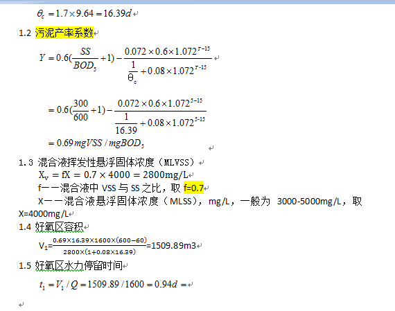 这是我的AO工艺好氧区容积的计算过程 可是最终水力停留时间太长了 说明我的计算有问题 但是不知道是哪里 谢谢大家了