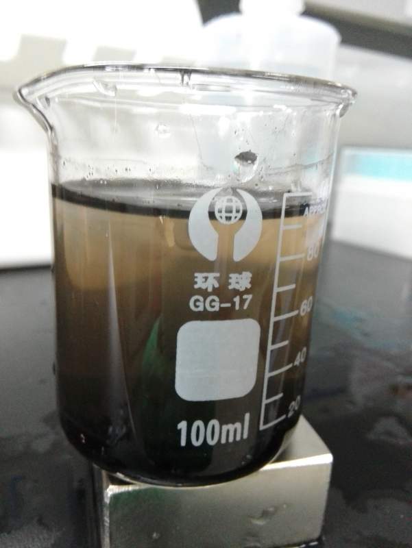 本应该是黑色的。现在呈黄色,有可能四氧化三铁纳米颗粒被氧化了。本应该在氮气保护气氛下的冰水浴中进行一切操作。