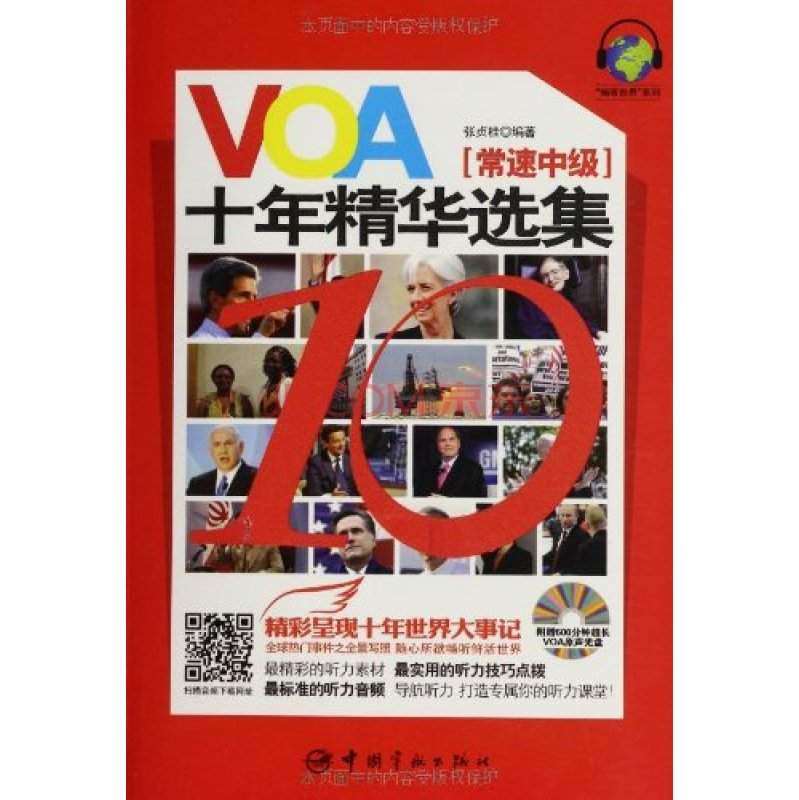 VOA(Voice of America,美国之音)是美国政府资助的国际广播,以46种语言对外进行无线电和电视广播,是世界上最大的英语新闻广播机构之一。《VOA十年精华选集(常速初级)》精选21世纪前十年的新闻英语素材,以常速英语,即美国人日常使用的规范用语为对象,从时事盘点、金融报道、人物掠影、探索发现、商业快递、美国大选、教育资讯、健康之旅、文艺橱窗、娱乐专辑、体育新闻、环境科学十二个主题选材。每篇文章包括五部分,即新闻背景介绍、英文原文、词汇注释、参考译文和听力技巧点拨。除此之外,根据文章中所讲述的大事件,我们还提供了相关事件的新闻实景图片,使读者能有更加愉悦的学习体验。为方便读者学习,所选文章尽量没有删减,长度与VOA官网的原文基本保持一致,为广大读者提供更完整的听力练习体验。 压缩包共1.13G,百度网盘下载链接: 注:仅有音频文件,没有文本 http://pan.baidu.com/s/1eQAg234 0befd7521f3dded684cd130b3fac844e.jpg cb18c436e019d488158bcc40f9b2bd34.jpg 307c6c6fc80fdae0b54df9e4f6a6241a.jpg 6401fe00d2b6ad7a2138738e4a12e227.jpg |