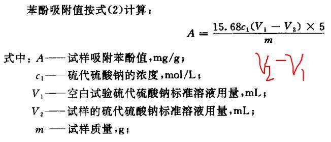 木质粉末活性炭苯酚吸附值计算公式问题 已有2人参与