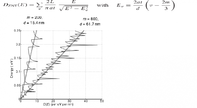 最近看到《Quantum Transport_ Atom to Transistor 》里有关锯齿型碳纳米管DOS的计算公式,E和v是变量,其他都已知,这本书里的图是用MATLAB画的,有对应程序,但我不会MATLAB,请问能用origin画图吗,怎么画的?我用最笨的方法,把这个求和项一个一个展开写出来输入到origin,结果图是出来了,是光滑曲线,跟这本书上的很不一样。 DOS-E1.png |