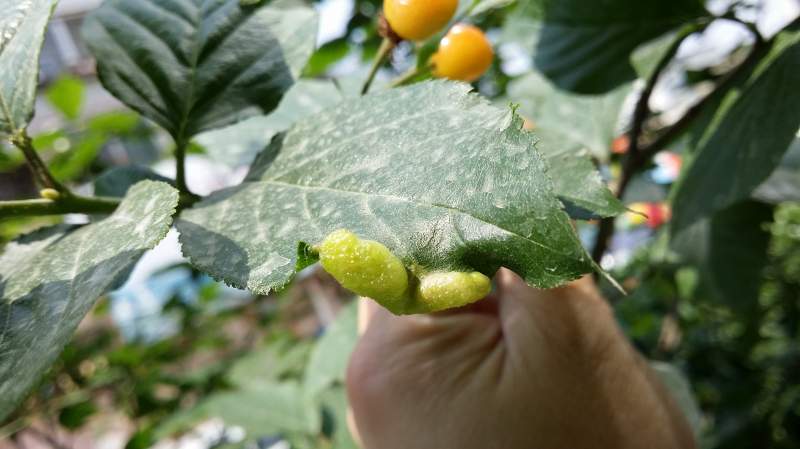 栽种在自家楼下园子里的樱桃树,经历3年的守望,今年终于开花结果。不过近期发现叶子边缘卷曲生长成囊性,囊性物中央存在幼虫生长,需要喷洒何种药物?希望农林专业人士指点。谢谢! 20150426_134123.jpg 20150426_134229.jpg |