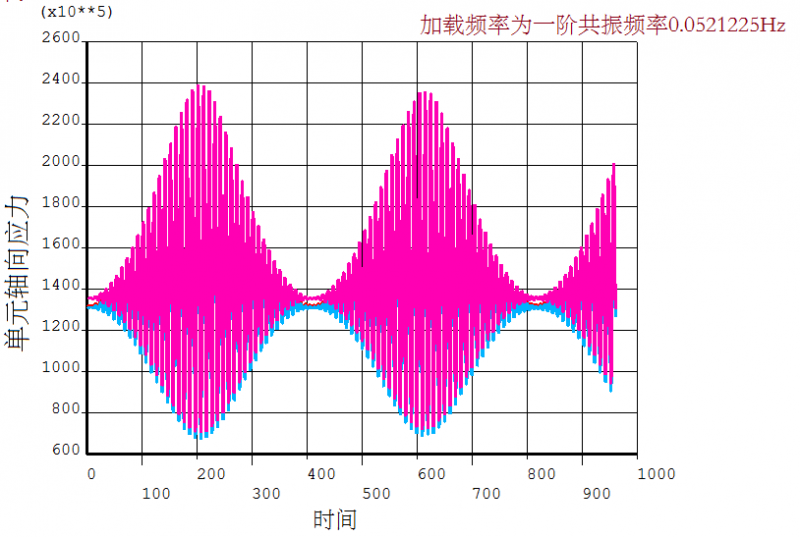 我用ansys进行瞬态动力学分析,载荷为正弦载荷,加载频率和模型固有频率一致约为0.056Hz