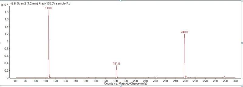 液相质谱图ESI离子源 碎片有113,181,249,可能含有基团是苯环,氨基,甲基,磺酸基