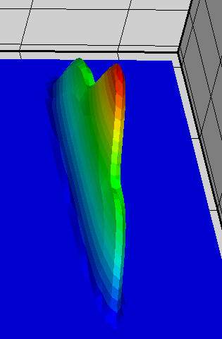 已知一个曲面上各个节点x、y、z坐标以及坐标上的水流密度值w,如何做出类似的等高线云图?即:先画出空间曲面,再在曲面上用高度把水流密度表示出来。