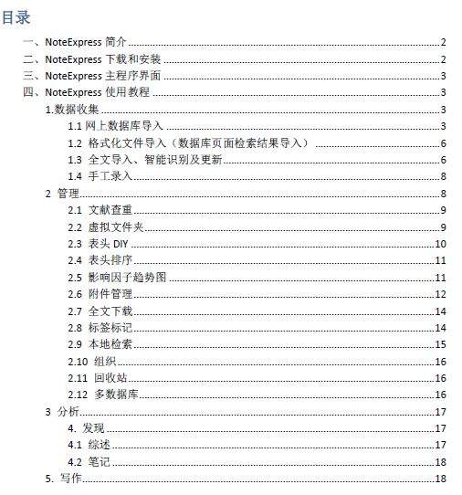 NoteExprss V3.0用户手册以NoteExprss V3.0版本为例讲解其基本使用技巧 NoteExpress是目前流行的参考文献管理工具软件,其核心功能是帮助读者在整个科研流程中高效利用电子资源:检索并管理得到的文献摘要、全文;在撰写学术论文、学位论文、专著或报告时,可在正文中的指定位置方便地添加文中注释,然后按照不同的期刊,学位论文格式要求自动生成参考文献索引。 其核心功能如下: 1) 检索:支持数以百计的全球图书馆书库和电子数据库,如万方、维普、期刊网、Elsevier ScienceDirect、ACS、OCLC、美国国会图书馆等。一次检索,永久保存。 2) 管理:可以分门别类管理百万级的电子文献题录和全文,独创的虚拟文件夹功能更适合多学科交叉的现代科研。 3) 分析:对检索结果进行多种统计分析,从而使研究者更快速地了解某领域里的重要专家,研究机构,研究热点等。 4) 发现:与文献相互关联的笔记功能,能随时记录阅读文献时的思考,方便以后查看和引用。检索结果可以长期保存,并自动推送符合特定条件的相关文献,对于长期跟踪某一专业的研究动态提供了极大方便。 5) 写作:支持Word 和 Latex,在论文写作时可以随时引用保存的文献题录,并自动生成符合要求的参考文献索引。软件内置3000种国内外期刊和学位论文的格式定义。首创的多国语言模板功能,可以自动根据所引用参考文献语言不同差异化输出。 附:NoteExpress在线帮助 https://www.inoteexpress.com/wiki/index.php/%E9%A6%96%E9%A1%B5 |