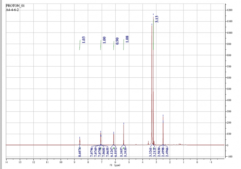 此化合物在脂溶性成分中极性比较大,看H谱,好像是一个8.6的活泼氢,另外7.07,6.12的d峰,耦合常数都是5.75,5.39的像是单峰,3.21的甲基单峰。碳谱5个碳。