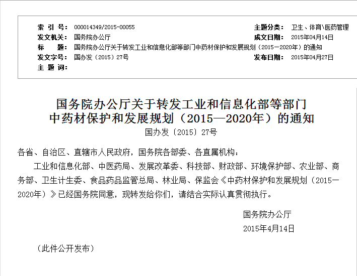 【转载】《中药材保护和发展规划(2015—2020年)的通知》国办发[2015]27号 已有1人参与