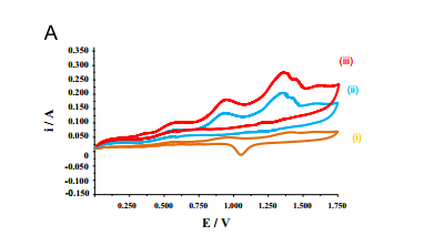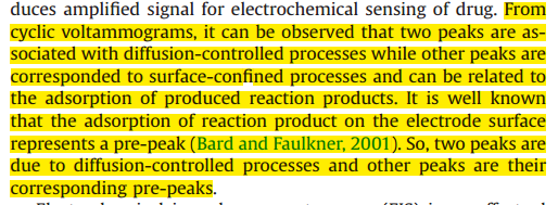 这个电极是BB上的一篇文献,是在PGE(我翻译成铅笔石墨电极,不知道对不对)电极上沉积金纳米棒,之后生物偶联了一种酶,来对抗艾滋病药物进行检测。附图是它的循环伏安图,(i)是PCE电极(ii)是nano Au/CHIT/PGE电极(iii)是HRP/nano Au/CHIT/PGE电极,下面是对得到的循环伏安图的解释,它说有两个峰是扩散控制过程,其他的是表面限制过程,这个不是很理解,不知道这是怎么判定的,求指教啊~~~
