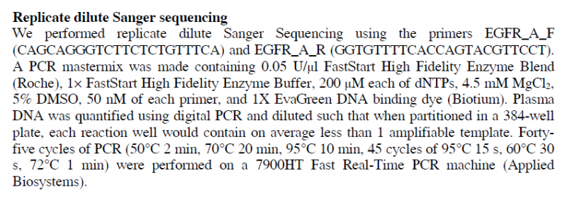 在一篇外周血肿瘤DNA测序的文章里面看到这样的PCR条件,Fortyfive cycles of PCR (50°C 2 min, 70°C 20 min, 95°C 10 min, 45 cycles of 95°C 15 s, 60°C 30 s, 72°C 1 min)