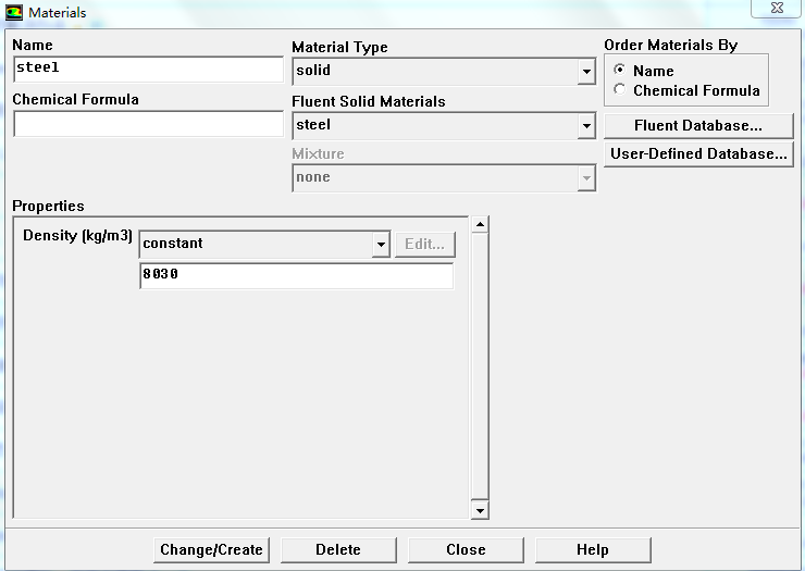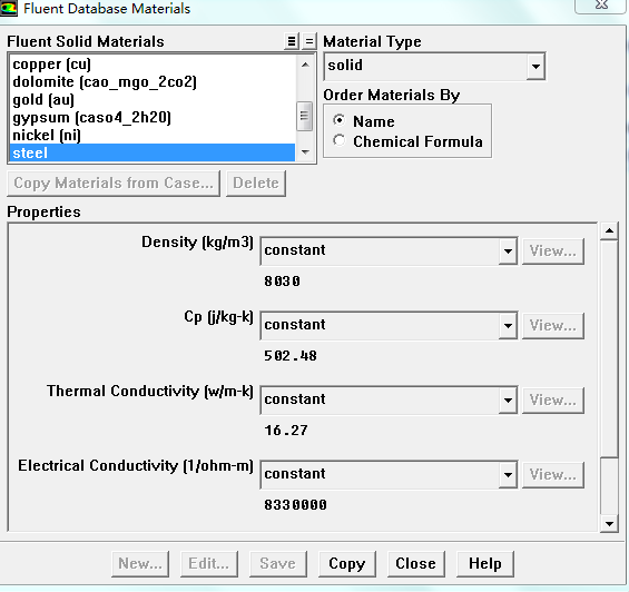 在用fluent选择材料时,固体材料copy之后只有密度一项,没有其余性质,而在之前的选择界面所有属性都有。