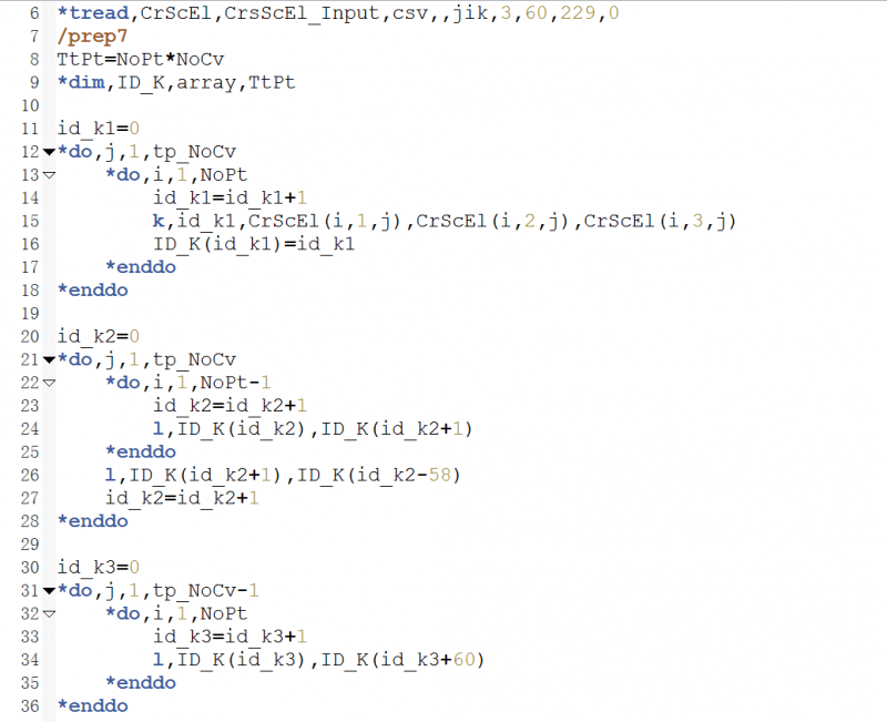 本人采用的建模方法,关键点,到四边形壳单元。 首先,导入关键点(由第三方软件生成),可以获得每点的ID号。 然后,通过利用关键点ID相邻的关系,建立两点之间连线。 但其后发现,相邻的两圈之间的节点号发生错位,并不按之前的规律排布。造成如图中斜线连接。 请问,有什么方法,可以纠正节点ID排布?以达到,全四边形连接。 相关命令见图2. temp.png 她.png t.png |