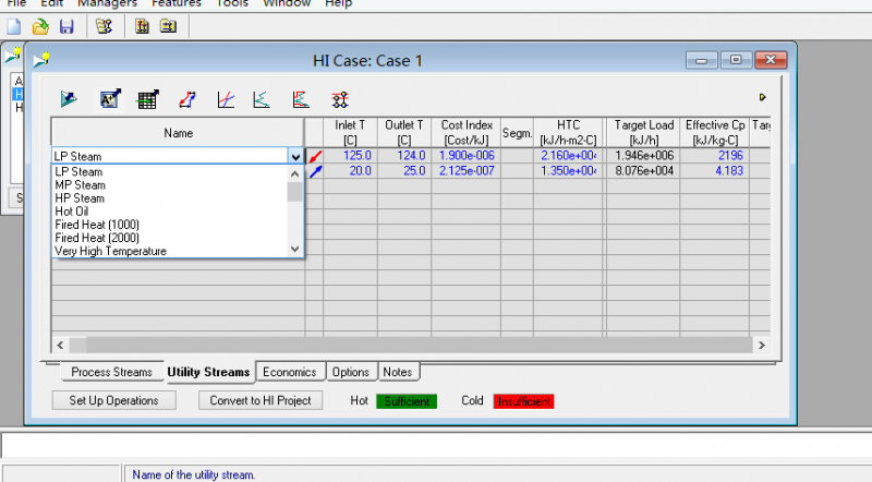 我用Aspen Energy Analyzer做换热网络优化,采取物流数据输入软件,但是公用工程物流那边就不知道怎样输入了。因为我的公用工程那边有蒸汽、循环水、冷凝水还有丙二醇等,但是这里公用工程物流只有库里那几种?请问该怎样输入。 {{WW0UZ%[7~T4Z{$Y{_QZX7.png |