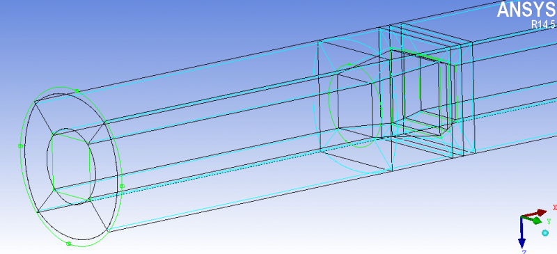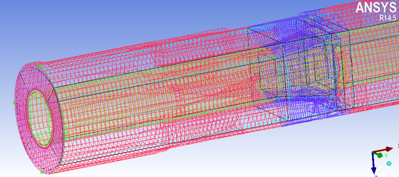 在ICEM中,对于有不同材料的管道流动时,应该如何划分网格,如下如图