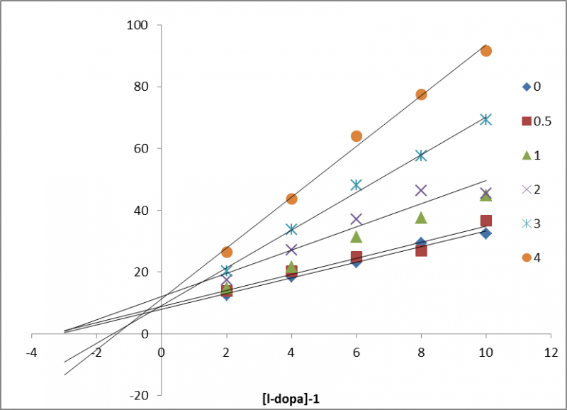 最近在做又抑制剂存在下的酶动力学实验,在做双倒数实验时,用EXCEL做出的线总是不能交于一点,急求原因。 我的实验方法是参照厦大陈清西老师团队的方案:3ml磷酸盐体系中,2.8ml 不同浓度的底物+0.1ml抑制剂+0.1ml 酶 双倒数.png |