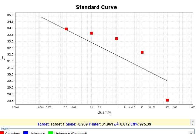 用Taqman探针法做qPCR,引物和探针都用了管家基因,但做出来的标曲很差,见附件中的图,求跪高手帮忙啊