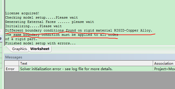 显示Different boundary conditions found on rigid material RIGID-Copper Alloy.