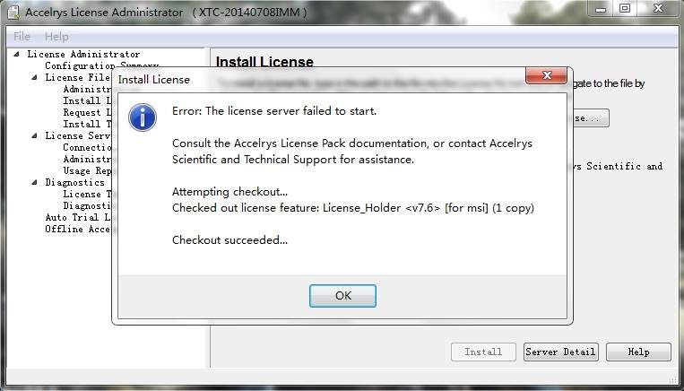 license安装出错,请检查license文件中主机名是不是你用户的名字,从图上来看你的用户名是XTC-20140708IMM.所以license文件中第一行应为