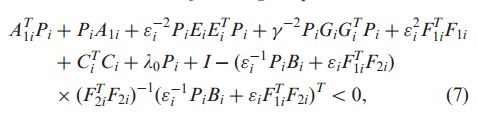 其中Pi是变量矩阵,其他矩阵和常数都可以赋值,跪求各位matlab大神能否给出解这个矩阵不等式P的matlab程序,我看书看了好多天还是写不出来。万分感谢!