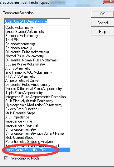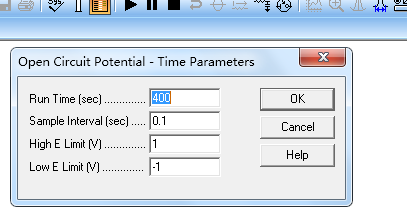 | 把电池充到最高电位,然后迅速切换到开路电位与时间的曲线测试,设置好时间就可以了,chi的工作站就是最后一个测试项目 |