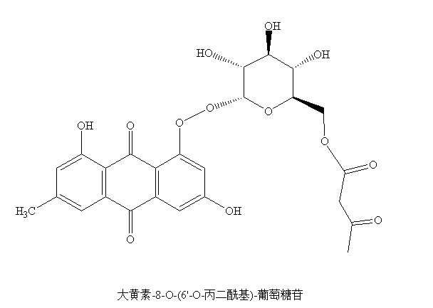 | 根据 中文名 大黄素-8-O-(6'-O-丙二酰基)-葡萄糖苷 画结构式 |