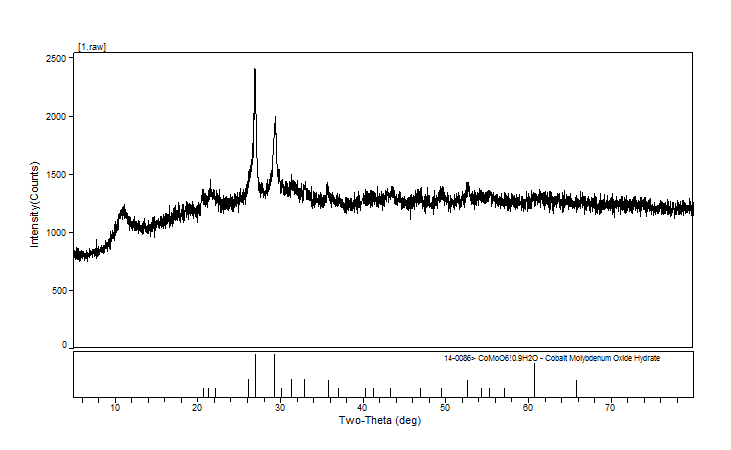 做的CoMoO4,这个是没有煅烧的沉淀的XRD,我想问问为什么不是CoMoO4的水合物,而是CoMoO6。
