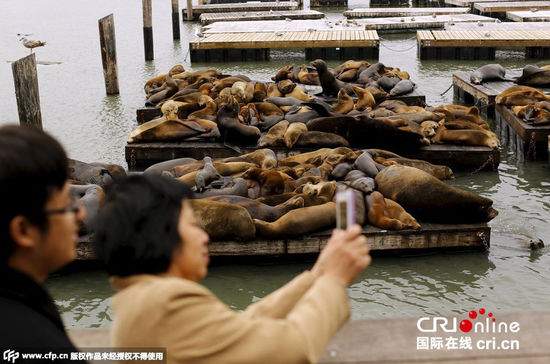 上百海狮聚集加州旧金山码头 已有5人参与