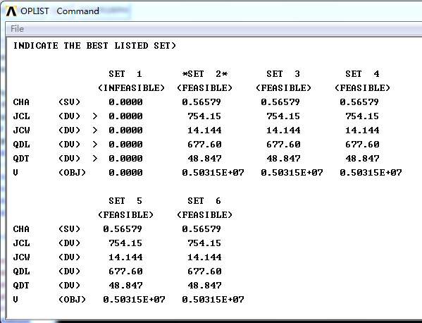大神,你好,我现在在做ansys结构优化设计,但是优化出来的结果是这样的,第一组数据是0,后面的都是相同的,请问是什么原因呀??