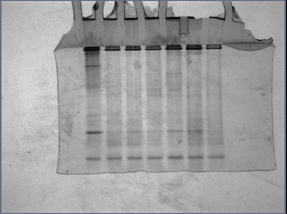 豆浆native电泳图跑成这样,变量是升温速率。2,6,10,14,18℃/min,升温到95摄氏度。第一条是生豆浆,请问为什么大部分集中在分离胶底部一点点出呢? native 2.jpg native.jpg |