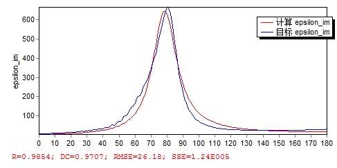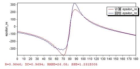 想拟合复数函数中的各个参数值,求大神帮忙平跑一下程序,v是自变量,epsilon_re是函数实部,epsilon_im是函数虚部,我编程使用的是手册中介绍的分解式的拟合方法,下面是写好的程序代码: Variable v,epsilon_re,epsilon_im; SharedModel; Function epsilon_re = epsmax-w_pe1^2/((600*pi/v)^2+r_e1^2)+derta*w_pe2^2*(w_oe^2-(600*pi/v)^2)/((w_oe^2-(600*pi/v)^2)^2+(r_e2*(600*pi/v))^2); epsilon_im=w_pe1^2*r_e1/((600*pi/v)^3+r_e1^2*(600*pi/v))+derta*w_pe2^2*r_e2*(600*pi/v)/((w_oe^2-(600*pi/v)^2)^2+(r_e2*(600*pi/v))^2); Data; 4 -79.1178 8.23761 4.02222 -80.1449 8.5075 4.04444 -82.0825 8.40739 4.06667 -83.6393 9.23381 4.08889 -84.8806 9.10384 4.11111 -87.0815 9.41879 4.13333 -88.3183 10.1001 4.15556 -90.0435 9.79016 4.17778 -92.3154 10.5519 4.2 -93.4154 11.0448 4.22222 -95.5231 10.7695 4.24444 -97.7177 11.8124 4.26667 -98.8034 12.0807 4.28889 -101.257 11.7945 4.31111 -103.588 13.0228 4.33333 -104.767 13.3184 4.35556 -107.417 13.0851 4.37778 -109.919 14.4726 4.4 -111.115 14.899 4.42222 -113.831 14.5706 4.44444 -116.701 15.9846 4.46667 -117.974 16.7 4.48889 -120.65 16.1836 4.51111 -124.187 17.4619 4.53333 -125.783 18.8641 4.55556 -128.08 18.4646 4.57778 -132.006 19.2723 4.6 -134.24 21.2338 4.62222 -136.16 21.1082 4.64444 -140.402 21.191 4.66667 -143.997 23.699 4.68889 -145.505 24.7699 4.71111 -149.066 24.1406 4.73333 -154.281 25.9221 4.75556 -156.672 28.8856 4.77778 -158.795 28.7495 4.8 -164.255 28.6672 4.82222 -169.551 32.2478 4.84444 -171.259 34.8206 4.86667 -174.79 34.081 4.88889 -181.992 35.2695 4.91111 -186.99 40.4723 4.93333 -188.619 42.5843 4.95556 -193.887 41.7276 4.97778 -202.998 44.6473 5 -207.777 51.88 5.02222 -209.404 53.9681 5.04444 -216.512 53.1831 5.06667 -228.333 58.217 5.08889 -233.314 69.0166 5.11111 -234.418 72.2202 5.13333 -243.105 72.124 5.15556 -258.021 80.4418 5.17778 -262.249 96.9575 5.2 -261.398 102.141 5.22222 -270.623 103.63 5.24444 -287.108 116.436 5.26667 -288.464 138.895 5.28889 -284.299 146.413 5.31111 -291.433 150.212 5.33333 -305.267 165.207 5.35556 -305.505 189.387 5.37778 -299.086 200.509 5.4 -302.175 206.562 5.42222 -312.792 220.077 5.44444 -317.37 244.714 5.46667 -311.056 264.572 5.48889 -308.418 276.665 5.51111 -313.404 291.239 5.53333 -319.548 315.848 5.55556 -316.074 346.506 5.57778 -306.184 371.954 5.6 -299.343 394.687 5.62222 -295.56 423.091 5.64444 -286.818 461.573 5.66667 -264.483 503.8 5.68889 -231.941 540.58 5.71111 -195.46 573.387 5.73333 -153.34 607.112 5.75556 -97.4825 641.048 5.77778 -22.5489 663.196 5.8 61.7332 660.105 5.82222 139.56 632.392 5.84444 203.672 589.706 5.86667 255.714 538.738 5.88889 296.274 479.126 5.91111 319.506 413.018 5.93333 323.411 350.362 5.95556 315 298.804 5.97778 302.618 258.075 6 289.911 223.756 6.02222 275.875 192.81 6.04444 259.082 165.891 6.06667 240.766 144.579 6.08889 223.331 128.527 6.11111 208.105 115.838 6.13333 194.775 104.617 6.15556 182.14 94.1435 6.17778 169.46 84.9086 6.2 157.042 77.4912 6.22222 145.576 71.7663 6.24444 135.405 67.0798 6.26667 126.324 62.7677 6.28889 117.814 58.5607 6.31111 109.484 54.6394 6.33333 101.329 51.2995 6.35556 93.5821 48.6175 6.37778 86.4301 46.4231 6.4 79.8729 44.4587 6.42222 73.7474 42.5481 6.44444 67.8536 40.6797 6.46667 62.0888 38.9587 6.48889 56.4787 37.4833 6.51111 51.1055 36.2663 6.53333 46.0258 35.2446 6.55556 41.2362 34.3312 6.57778 36.6829 33.4632 6.6 32.2975 32.6255 6.62222 28.0332 31.8415 6.64444 23.8795 31.1429 6.66667 19.8508 30.5457 6.68889 15.9662 30.0433 6.71111 12.2364 29.6138 6.73333 8.65784 29.23 6.75556 5.21472 28.8681 6.77778 1.88333 28.5142 6.8 -1.36104 28.1656 6.82222 -4.53808 27.8294 6.84444 -7.6589 27.5183 6.86667 -10.7248 27.2452 6.88889 -13.7282 27.0184 6.91111 -16.6567 26.8369 6.93333 -19.4999 26.6877 6.95556 -22.258 26.5498 6.97778 -24.9464 26.4032 7 -27.5914 26.2408 7.02222 -30.2192 26.0731 7.04444 -32.8434 25.925 7.06667 -35.4577 25.8246 7.08889 -38.0367 25.7895 7.11111 -40.5465 25.8141 7.13333 -42.9635 25.8678 7.15556 -45.2913 25.9077 7.17778 -47.5629 25.9024 7.2 -49.8255 25.8494 7.22222 -52.1168 25.7778 7.24444 -54.447 25.7349 7.26667 -56.7918 25.765 7.28889 -59.1003 25.8861 7.31111 -61.3185 26.0756 7.33333 -63.4197 26.2757 7.35556 -65.424 26.4225 7.37778 -67.3905 26.4802 7.4 -69.3881 26.4596 7.42222 -71.4634 26.4128 7.44444 -73.6206 26.411 7.46667 -75.8167 26.5147 7.48889 -77.9756 26.7447 7.51111 -80.0208 27.0652 7.53333 -81.9159 27.3941 7.55556 -83.6883 27.6428 7.57778 -85.4171 27.7608 7.6 -87.1945 27.7585 7.62222 -89.087 27.6996 7.64444 -91.11 27.6751 7.66667 -93.221 27.7702 7.68889 -95.3302 28.0295 7.71111 -97.3334 28.4314 7.73333 -99.1595 28.8884 7.75556 -100.81 29.2841 7.77778 -102.36 29.5287 7.8 -103.924 29.5984 7.82222 -105.603 29.5405 7.84444 -107.455 29.4511 7.86667 -109.473 29.4426 7.88889 -111.585 29.6077 7.91111 -113.674 29.9833 7.93333 -115.615 30.5264 7.95556 -117.333 31.1213 7.97778 -118.84 31.6275 8 -120.233 31.9422 |