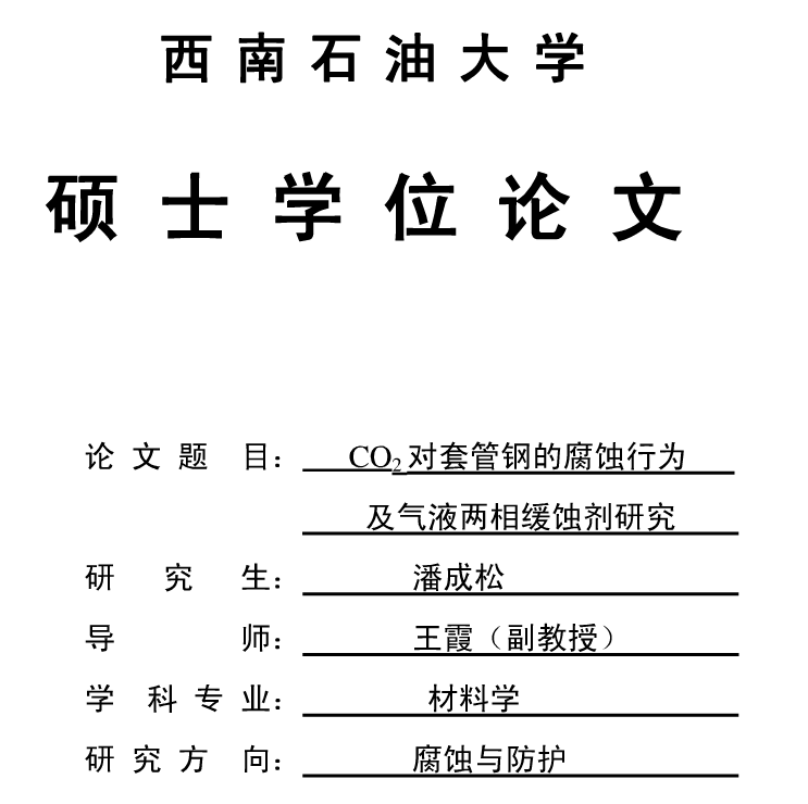 CO2对套管钢的腐蚀行为及气液两相缓蚀剂研究