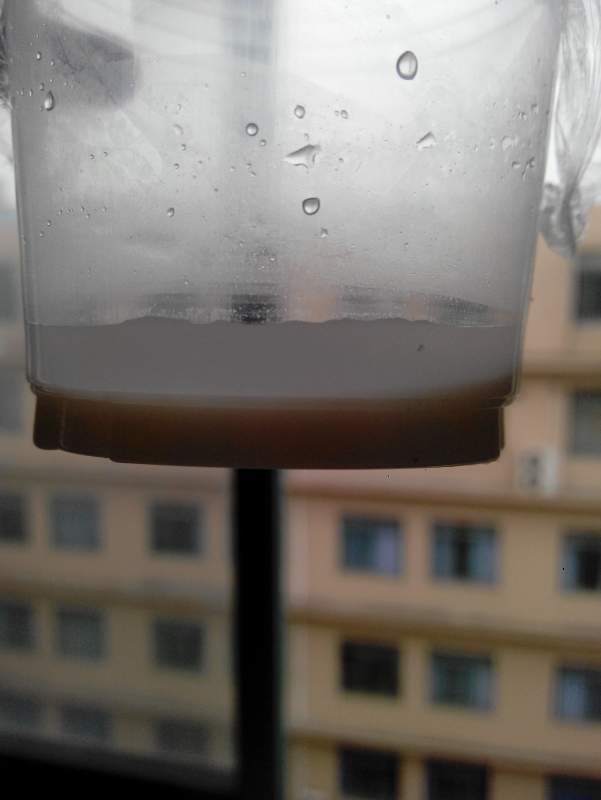 各位大神。小弟做水性聚氨酯,做了以后进行加水乳化然后把丙酮减压蒸馏出来,将后处理的聚氨酯放一晚上就出现了上面有一层清液,而且一晃就变浑浊了,这是怎么回事?望解。如图 IMG_20150508_104336.jpg 1431053803706.jpg |