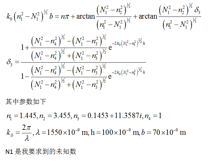 新人求助解MATLAB超越方程,方程中含有复数已有2人参与