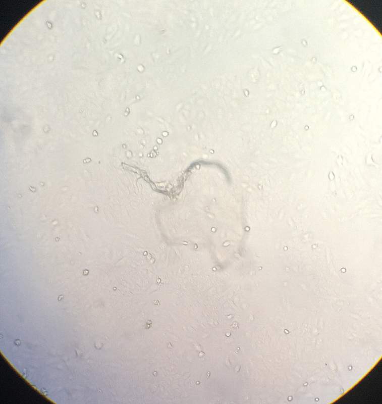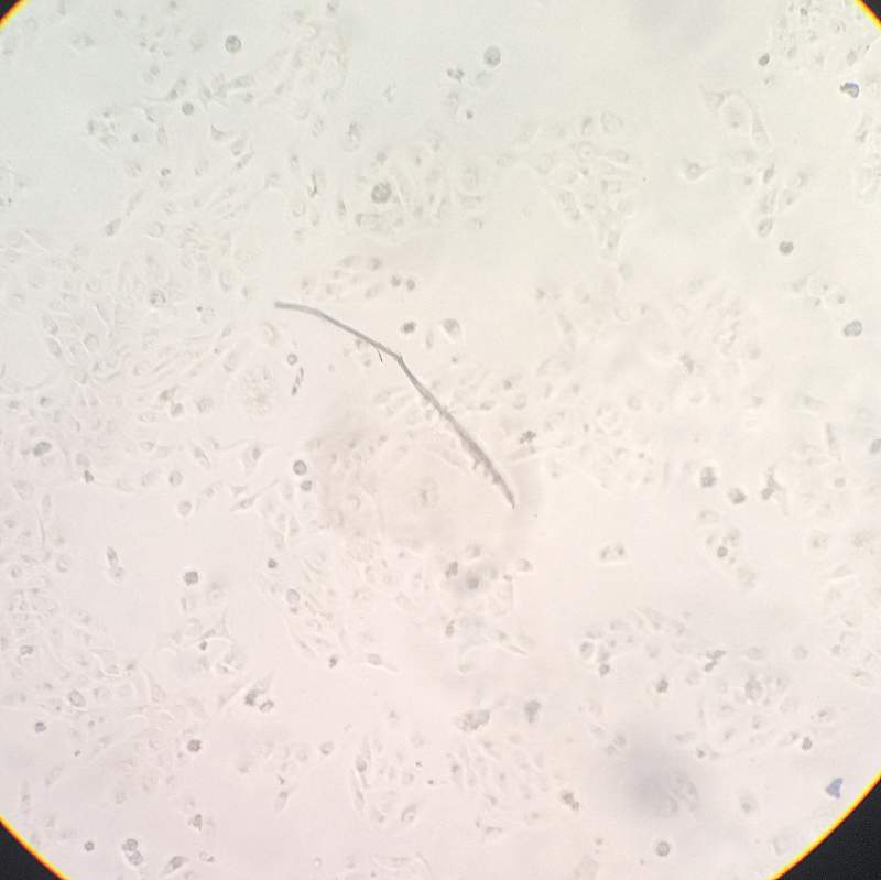 今天仔细看了下其他三瓶,培养基虽然澄清,但在视野里看到了长杆状的东西。。。求有经验的帮忙看下,这是神马??