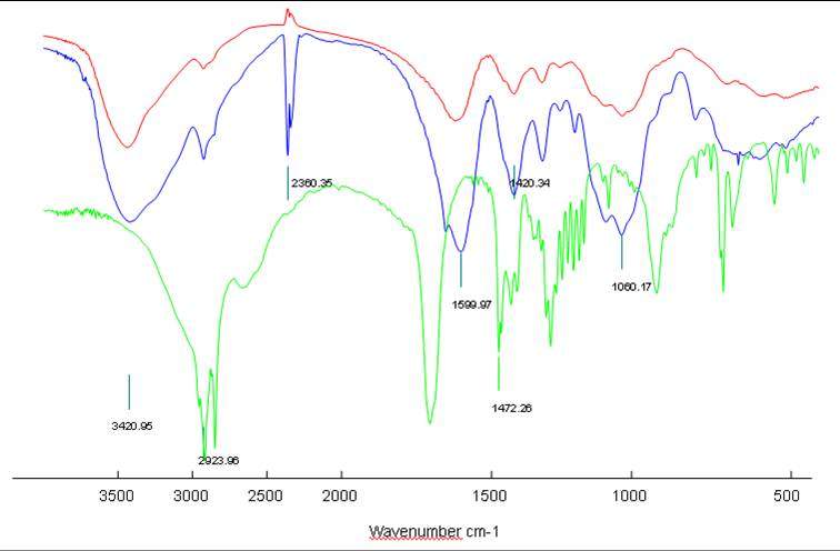 我是作材料的,图中红线是多糖(上),合成产物(中),硬脂酸(下),合成过程主要是多糖的羟基与硬脂酸的羧酸成酯键,看文献酯键一般是1700左右处,与羧酸C=0 的峰位相近,但我的合成产物在2360处出现新的峰,是酯键?甲基?亚甲基?真的有点晕,而且好难找文献对应。希望虫友们给予帮助!!急求,先谢谢。