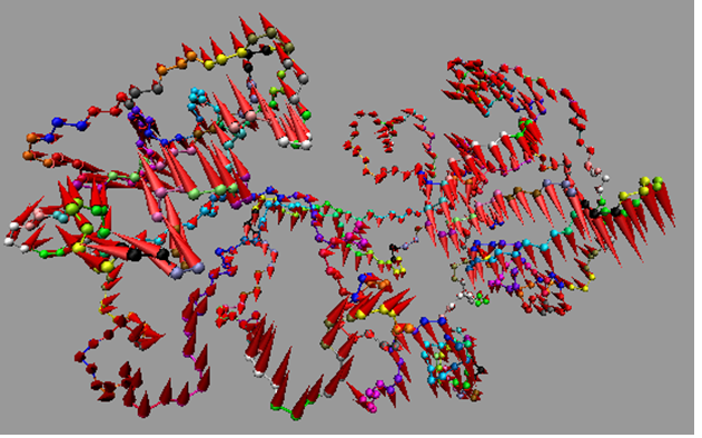 在做蛋白质的动力学模拟结果分析中,以主成分分析法对GlnBP运动的向量进行分析利用VMD软件从不同的几个角度可以绘出各个分子运动的趋势(包括大小和方向,即分子的向量)。 如下联的图 在VMD中是如何做出来的?求指教