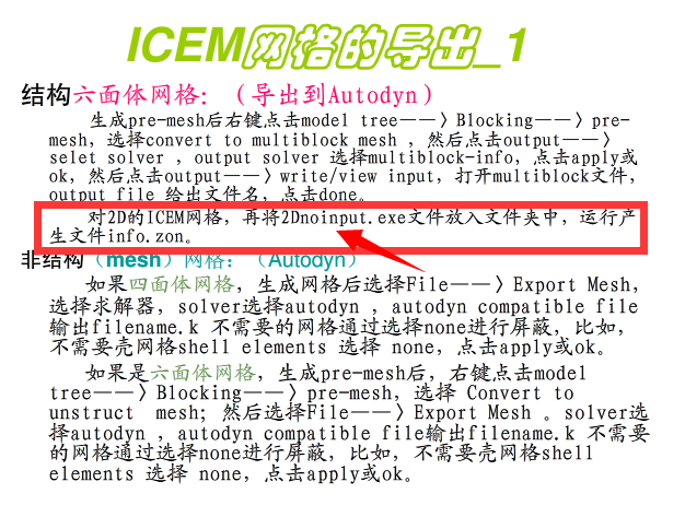 最近在用Autodyn做点计算,一直用ICEM做网格,现在想用Autodyn算二维,发现其二维网格只支持自建的或者Tgrid的,但是可以将ICEMCFD二维结构网格如何转化为TGrid的格式,不过需要一个叫2Dnoinput.exe的文件,不知道哪位有这个东西,或者怎么转换? 在此跪谢,只有5个币,无法给更多了。 ![]() ![]() ![]() 1.png 2.png |