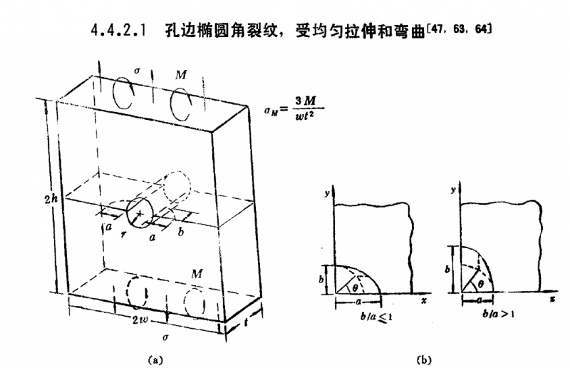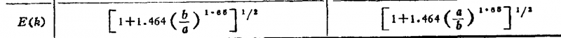 欲计算涡轮盘偏心孔裂纹扩展应力强度因子,查阅《应力强度因子手册》中的经验公式,准备用4.4.2.1中的孔边椭圆角裂纹经验公式,大家看可否;另外,公式中提到的第二类完全椭圆积分E(k),实在看不清楚,有哪位大神有书帮查一下是啥么. 飞信截图20150509183032.png 孔边角裂纹.png |