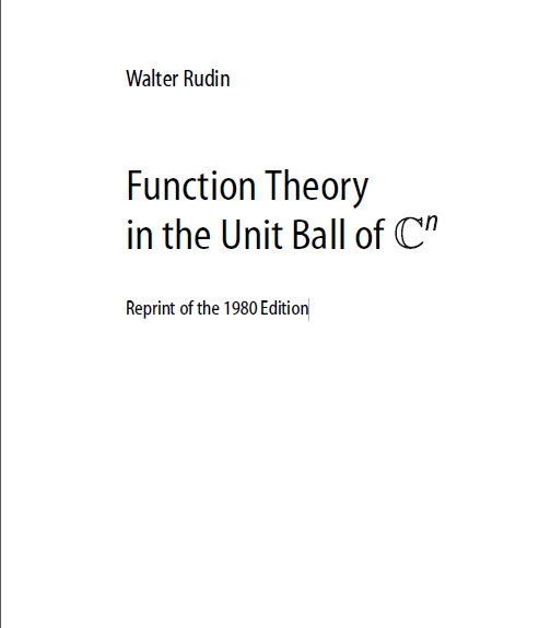 分享一本rudin的书Function Theory in the Unit Ball of Cˇn【rudin】