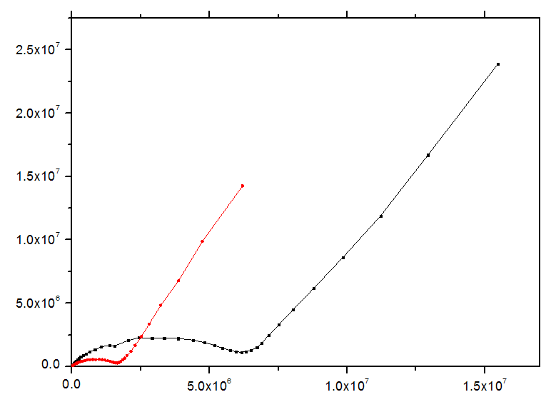 第一张是在origin中制作的Nyquist图,可是在zsim中的Nyquist图确实这样的,不知道为何?
