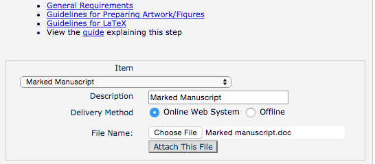 在Elsevier 投稿系统上传修回的文章时中,cover letter, highlight, clean manuscript 等文件都是直接上传,唯独上传marked manuscript时遇到关于delivery method的选择:请问大家,通常是选择 online web system 还是 offline 呢? 这两者对修回文章有什么影响呢?(请见附件截图)