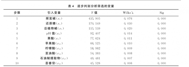 请问我采用逐步判别分析里的马氏距离来作为分类方法,那么结果输出的表应该包括哪些参数才能解释清楚?像下面这个表一样可以么?