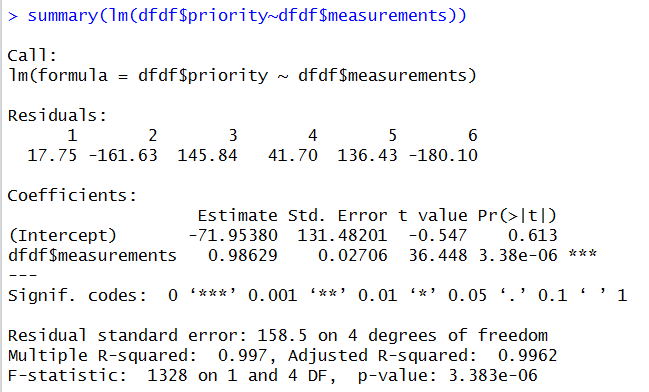 第一行的截距是极显著的,则意味着measurements的取值对priority有极显著相关性?