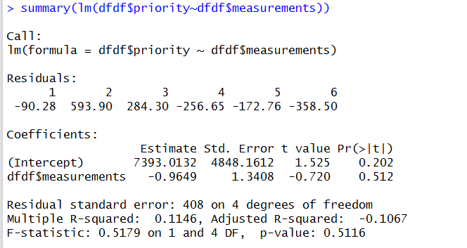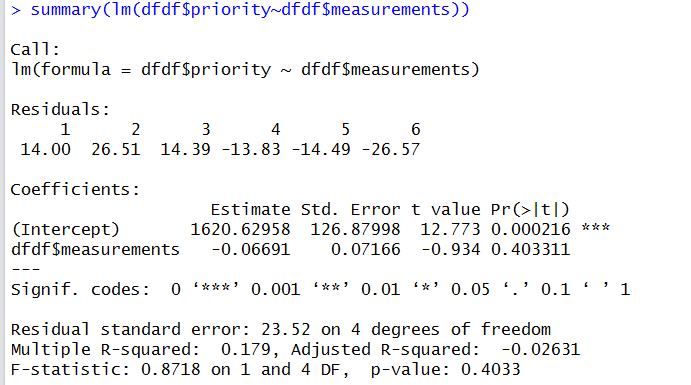 第二行为斜率,后面的Pr没有标显著性符号,是不是意味着measurements的取值对priority影响不显著?