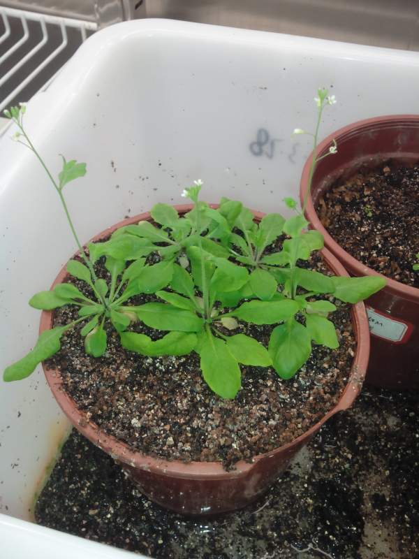 大家好,我种的拟南芥种基质里从嫩苗到开花都是底部的老叶黄化,不知道是什么原因,请教下大家! 种在人工气候箱中,设置的23度/21度,16h/8h,湿度70%,但实际测量温度23.8度,湿度54% (这跟测定仪器离加湿器出湿口远近可能有关)。 基质是网上买的花土:蛭石:石英砂 5:3:1 IMG20150512082959.jpg IMG20150512083152.jpg |