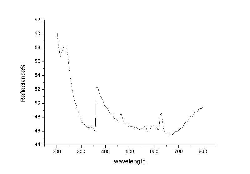 如图所示,在图中360 nm处, 漫反射谱线急剧下滑,几乎呈直线, 感觉很不正常。请教诸位什么原因会导致这样的结果。多谢了