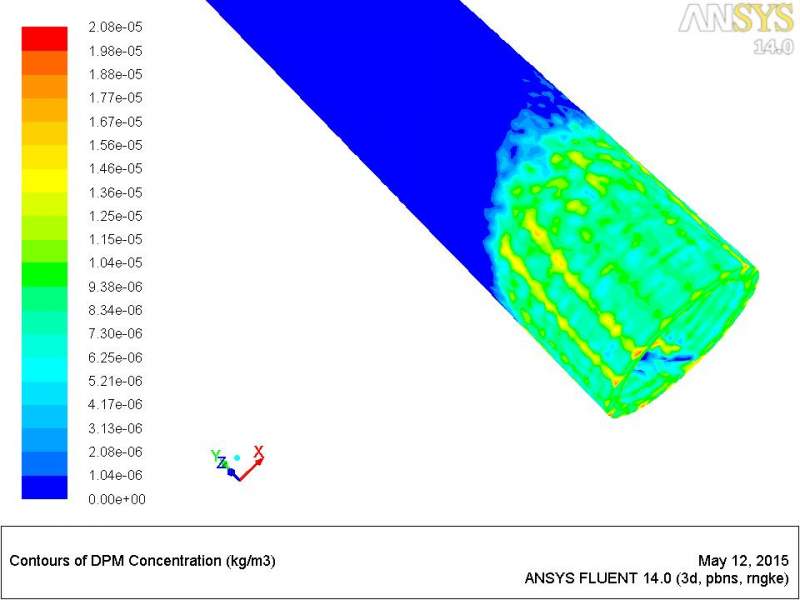 用fluent模拟涡流气井排水采气过程,模型分两部分:下面是螺旋段上面是圆柱,气液从下面的螺旋段旋上去,再由上面圆柱内出来,计算完结果显示气液就没有旋上去,为什么?因为是新手不知道哪里出了问题,会不会是网格划分的问题?求助大神帮忙解决 这是计算完的结果 50du1.jpg |