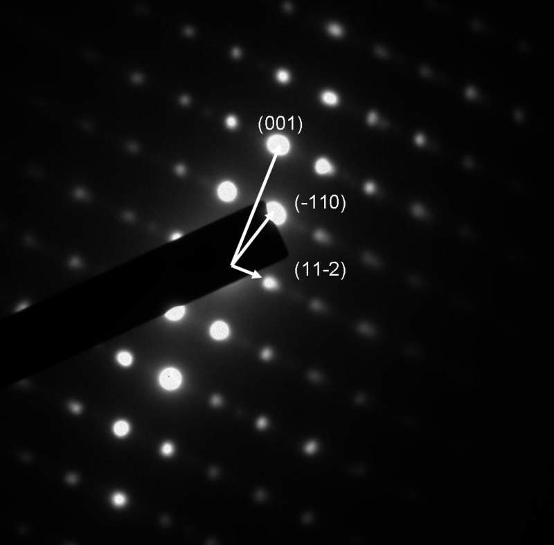从晶体生长机理上说,晶面是向外平行推移生长的,这么说的话应该是(-110)方向。但是这个纳米线材料的形貌取向是与(001)相同。