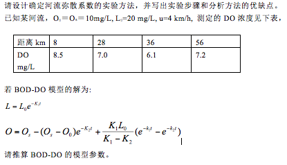 之前没做过相关研究,有人问这个题就来求助小木虫了 设计确定河流弥散系数的实验方法,并写出实验步骤和分析方法的优缺点。 另一道题见图 求大神帮助 屏幕快照 2015-05-14 下午5.58.20.png |
